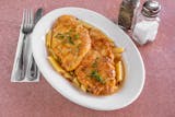 Sauteed chicken with mushrooms in a brown wine sauce with mozzarella.